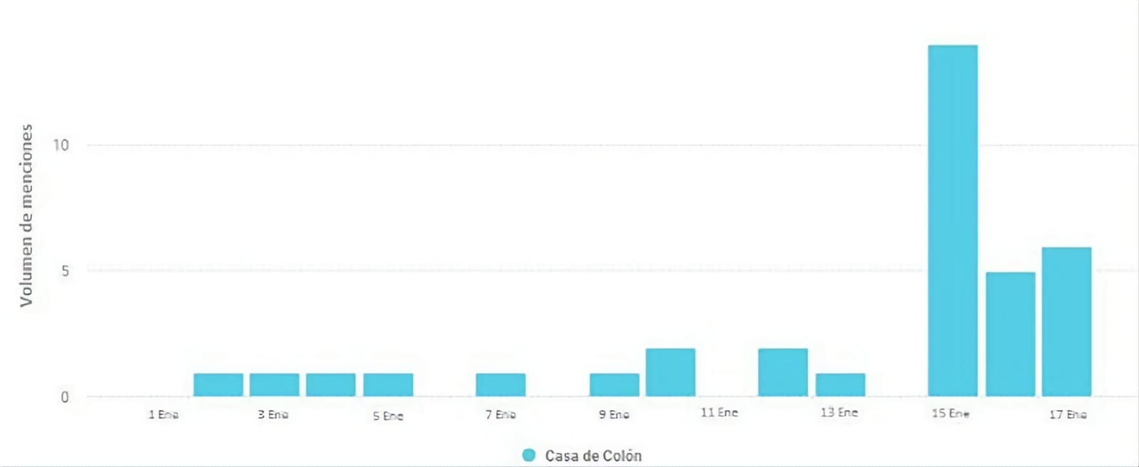 Un estudio realizado por MMI Analytics permite observar cómo fueron evolucionando las 36 menciones en redes sociales de 26 autores distintos desde el 1 de enero al 17 del corriente mes, sobre La Casa de Colón de Gran Canaria: