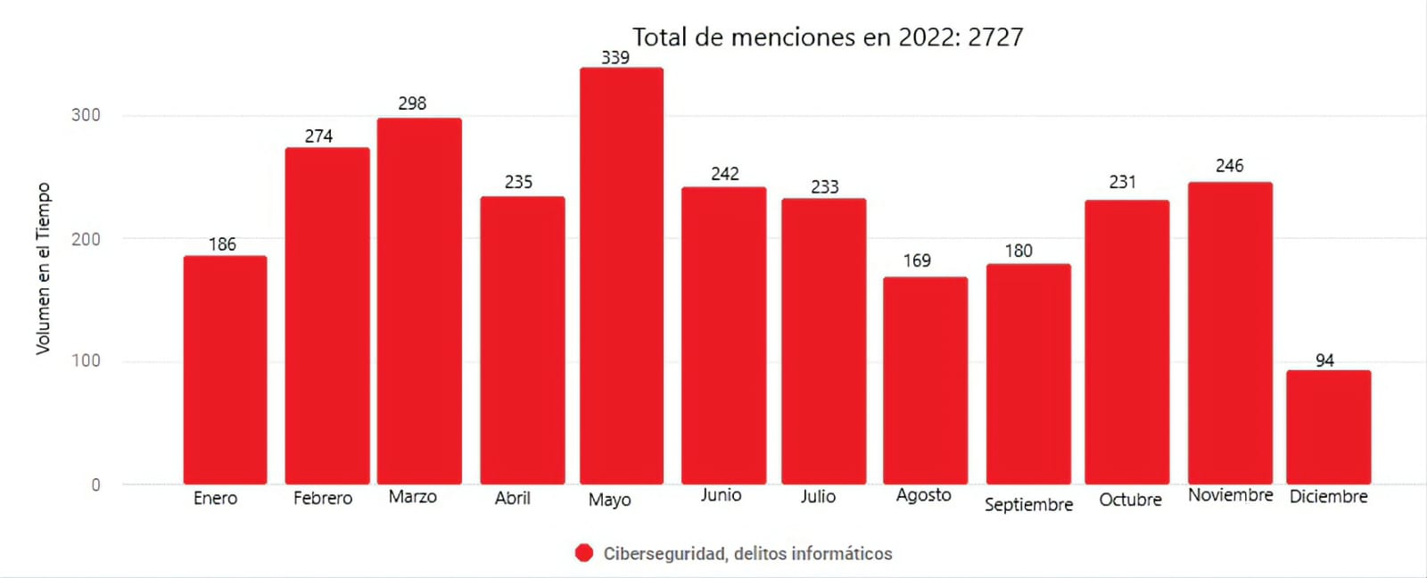 Gracias a las herramientas de seguimientos de redes sociales de MMI Analytics se puede mostrar, en el siguiente informe, cómo fueron evolucionando las 2727 menciones en redes sociales de 729 autores únicos, sobre la ciberseguridad en 2022: