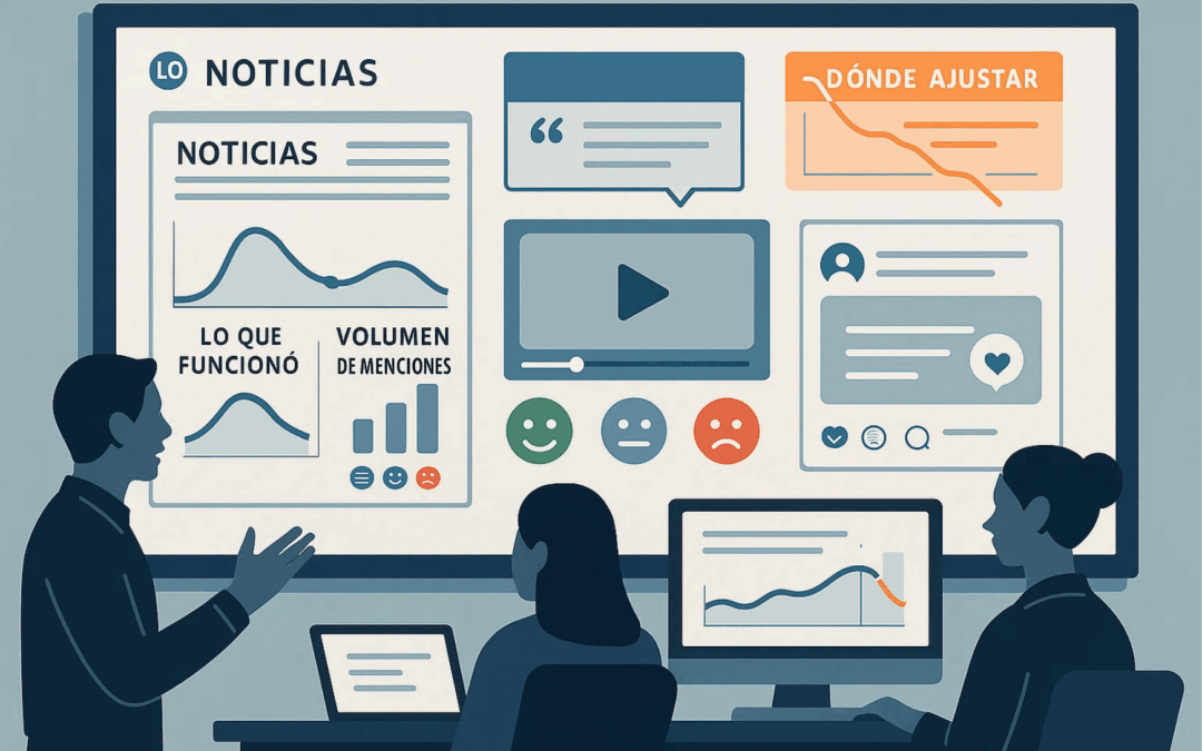 La medición no se limita a contar impactos, sino a conectar señales. Las citas textuales que activan reacciones se muestran junto a la pieza que las contiene, de modo que el equipo entiende qué frase disparó el interés o la crítica. “Necesito la frase que gatilla la conversación, no solo la curva”, apunta un técnico de redes y web municipal. Esa trazabilidad ahorra discusiones internas y focaliza el ajuste en el lugar correcto: el lead, el orden de datos o la presencia de un testimonio real.