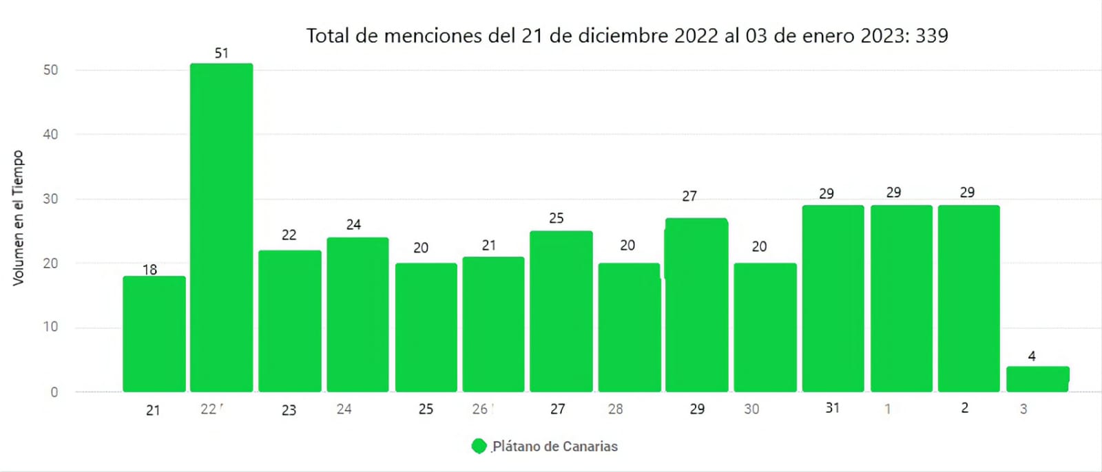 Un estudio realizado por MMI Analytics permite observar cómo fueron evolucionando las 339 menciones en redes sociales de 252 autores únicos, sobre el Plátano de Canarias en los últimos 14 días: