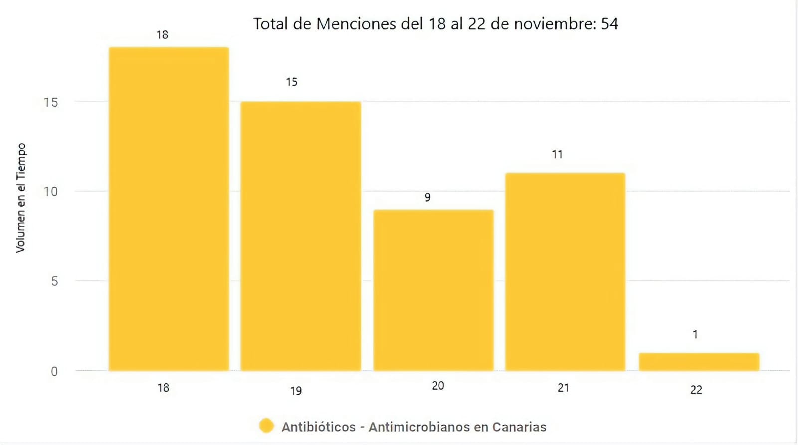 La resistencia a los antibióticos se está convirtiendo en una amenaza para la salud mundial cada vez más fuerte. El último análisis del Observatorio de Tendencias Cofares sobre el Uso y abuso de antibióticos determina que seis de cada diez españoles (60,1%) guardan el antibiótico que les sobra de un tratamiento para poder utilizarlo en caso de urgencia, lo que conlleva a un mal uso de este tipo de fármacos, que únicamente deben tomarse con prescripción médica y siguiendo las indicaciones específicas del profesional sanitario, contribuyendo así a la resistencia a los antimicrobianos. Por eso, realizar estudios e informes de cómo los medios de comunicación y las redes sociales ayudan a difundir las campañas de concienciación son relevantes y necesarios.