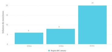 El pico de menciones se dió el día de ayer, 15 de enero ya que fue el día en el que se dio inicio a la contienda marítima. La ARC January es la primera competición organizada por World Cruising Club para este 2023.