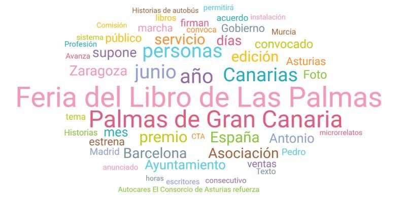 Gracias al monitoreo de medios realizado sobre la Feria del Libro de Las Palmas, se puede determinar que los términos más utilizados dentro del período de tiempo evaluado fueron: