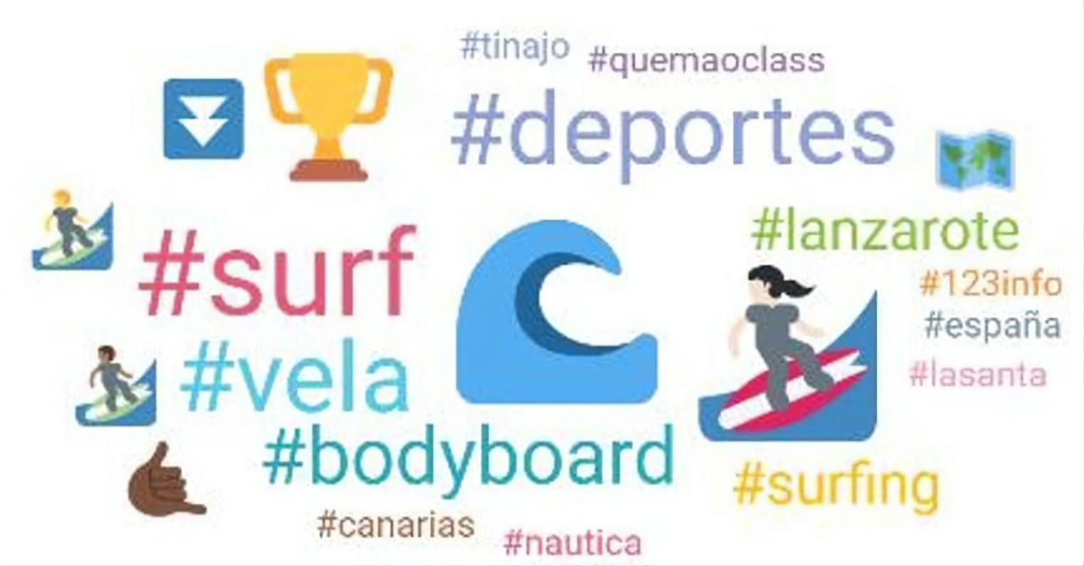Gracias al estudio realizado se pueden destacar los siguientes emojis y hashtags como más repercusión en redes al hablar del torneo de surf y bodyboard en los últimos 30 días: